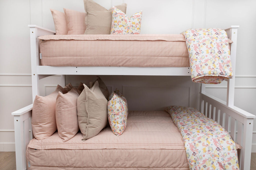 Our minky Beddy’s means the underside of the top comforter has a cozy sewn-in minky blanket. As always, the base or “bottom sheet” is made from soft and breathable 100% cotton. Minky is our most popular (and cozy!) option and is well-suited for most climates.