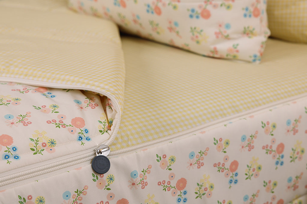 Say hello to the perfect dainty floral for your little one’s best night’s sleep! This zipper bedding set features a ditsy floral exterior and buttery yellow gingham interior, providing the most adorable combo of cozy and effortlessly cute.