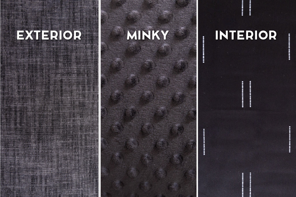 Our minky Beddy’s means the underside of the top comforter has a cozy sewn-in minky blanket. As always, the base or “bottom sheet” is made from soft and breathable 100% cotton. Minky is our most popular (and cozy!) option and is well-suited for most climates.